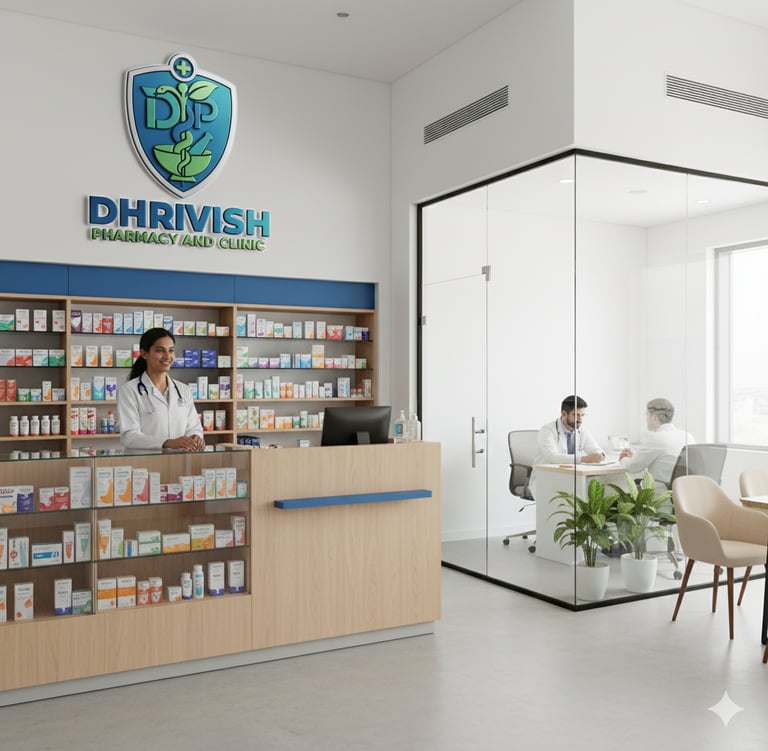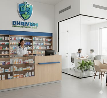 Founded in 2025, Dhrivish Pharmacy & Clinic is dedicated to providing reliable healthcare support through a well-stocked pharmacy, expert OPD consultations, and professional diagnostic sample collection. Our mission is to make quality healthcare accessible, convenient, and trustworthy for every individual.